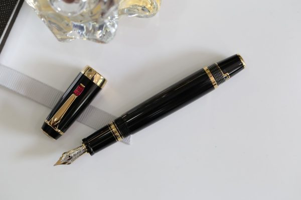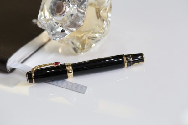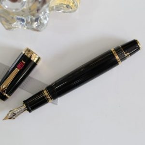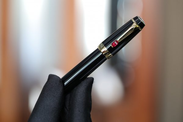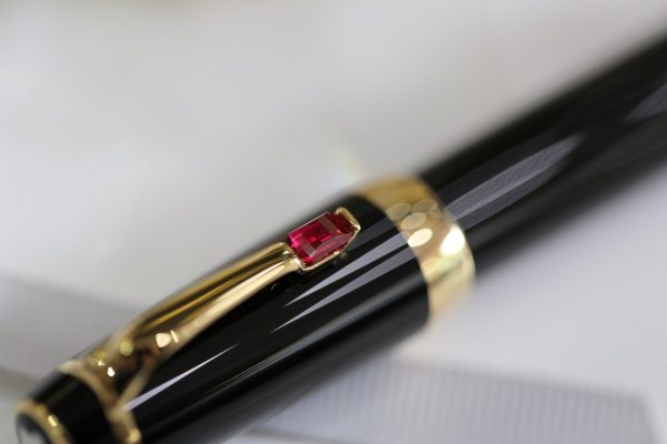 Cây bút này được đính đá màu đỏ (Ruby Red – Rouge), ngòi vàng 14k bicolor cỡ F.
